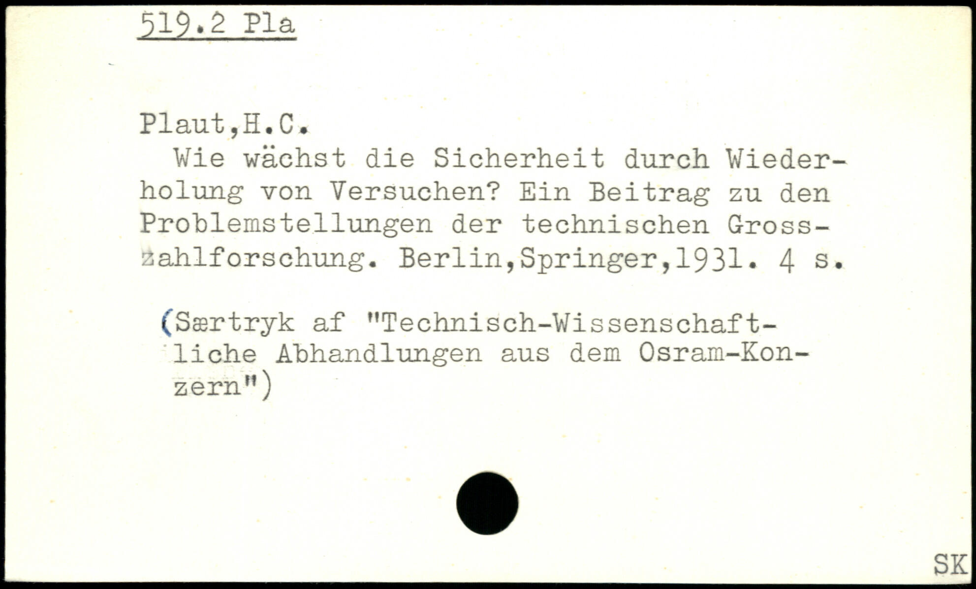 Wie wächst die Sicherheit durch Wiederholung von Versuchen? Ein Beitrag zu den Problemstellungen der technischen Grosszahlforschung.