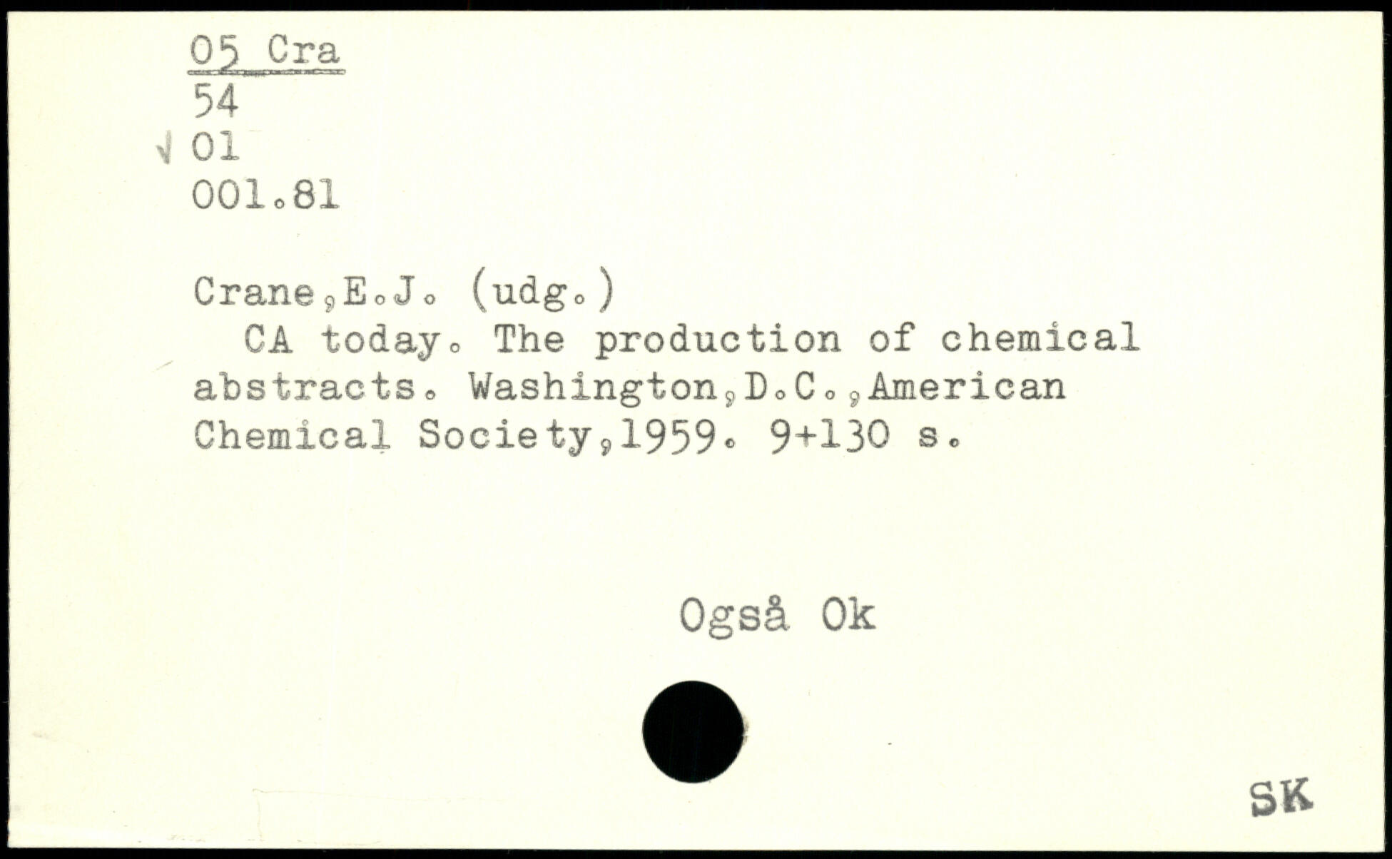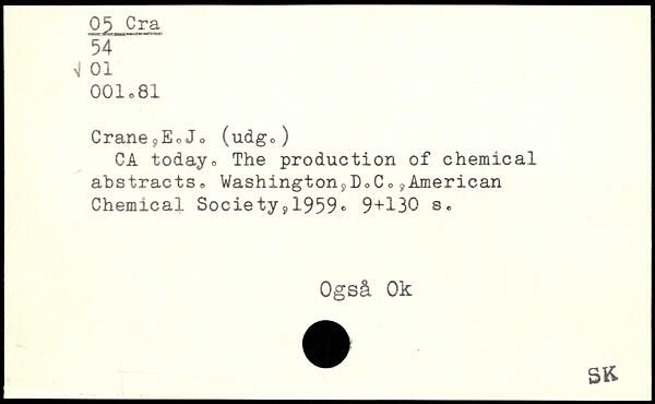 Crane ?EoJ o (udg0) CA todayo The production of chemical abstracts, WashingtongDoCo ^American Chemical Society91959®