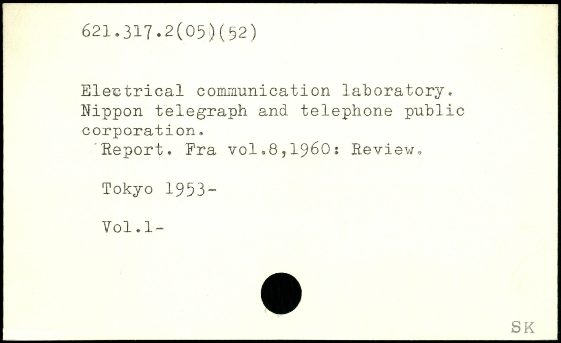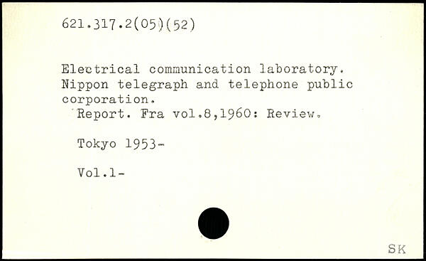 Electrical communication laboratory. Nippon telegraph and telephone public corporation. Report. Fra
