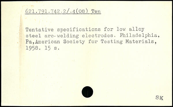Tentative specifications for low alloy steel arc-welding electrodes, Philadelphia, Pa,American Society for Testing Materials, 1958.