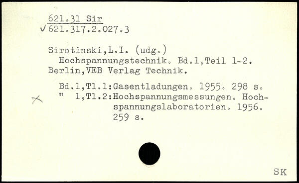 Hochspannungstechnik. Bd.l^Teil 1-2. Berlin,VEB Verlag Technik.