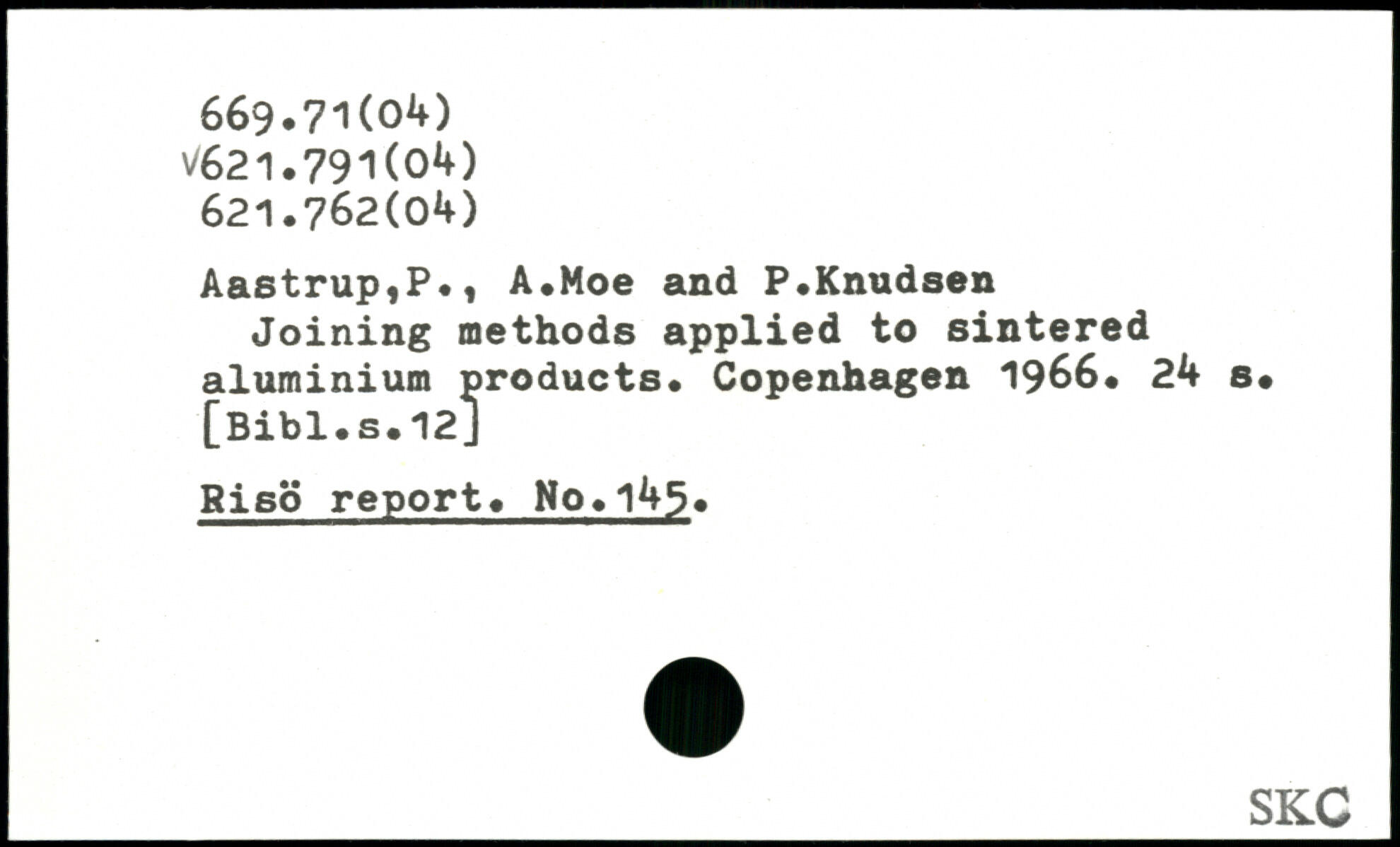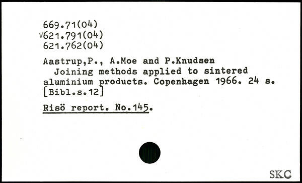 AastrupfP.t A.Moe and P.Knudsen Joining methods applied to sintered aluminium products.