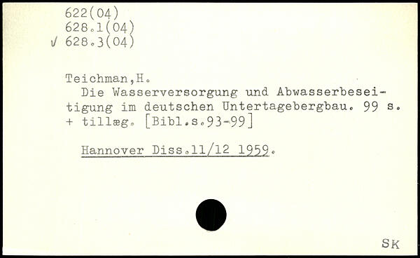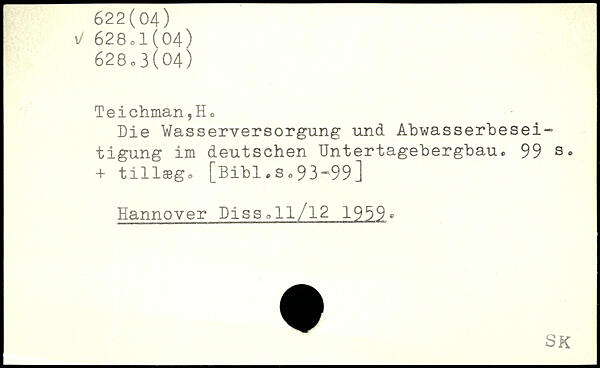 Die Wasserversorgung und Abwasserbesei-tigung im deutschen Untertagebergbau,