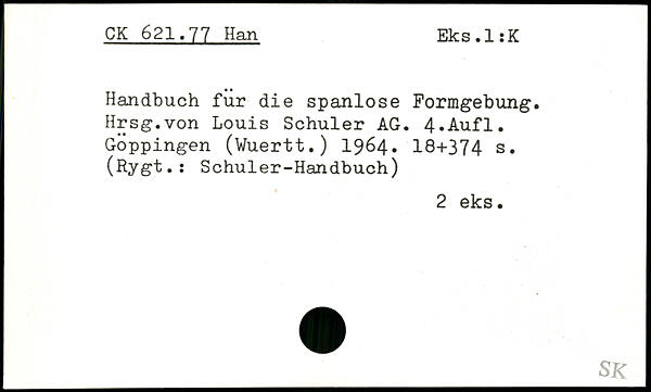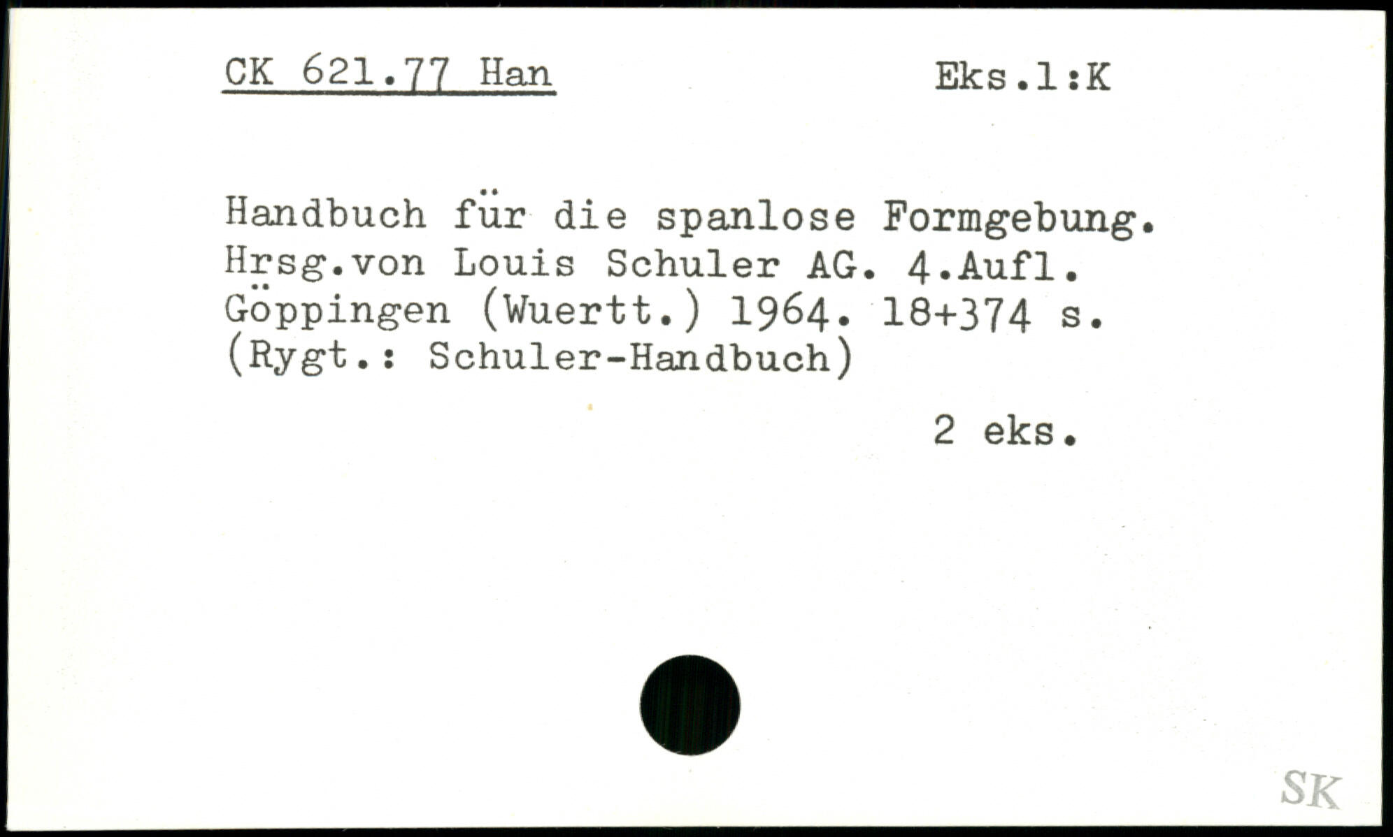 Handbuch für die spanlose Formgebung. Hrsg.von Louis Schüler AG.