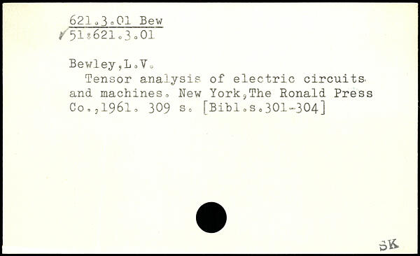 Bew.ley ,L oY, Tensor analysis of electric circuits, and machineso New YorkjThe Ronald Press Co , ?1961o