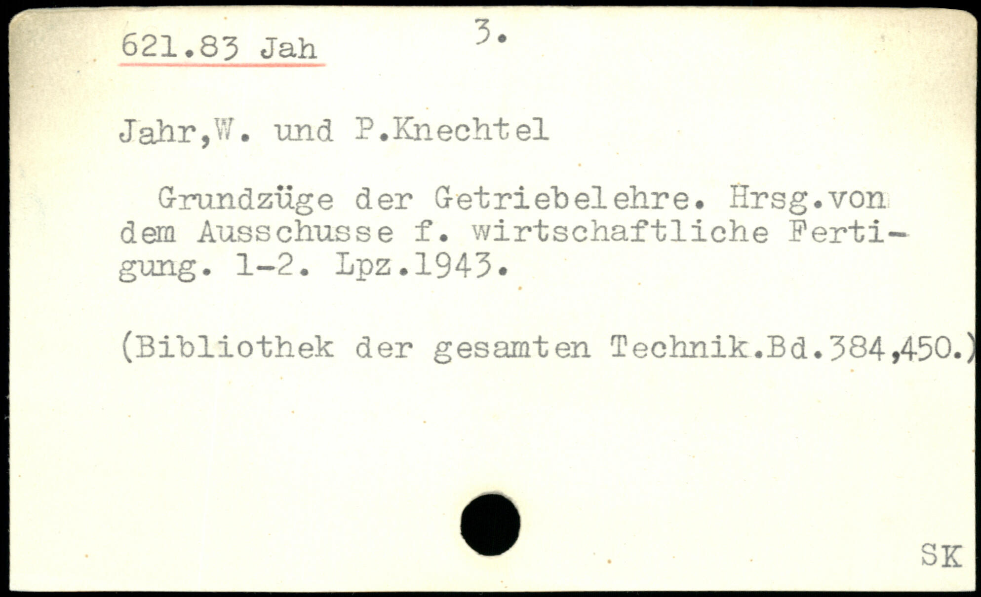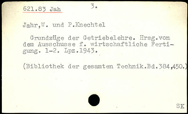 Jahr,W. und P.Knecht el Grundzüge der G-etriebelehre. Hrsg.von dem Ausschüsse f. wirtschaftliche Fertigung. 1-2. Lpz.1943.