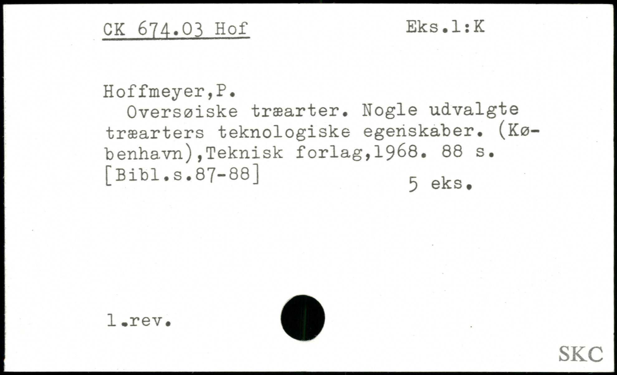 Oversøiske træarter. Nogle udvalgte træarters teknologiske egenskaber. (København) , Teknisk forlag,1968.