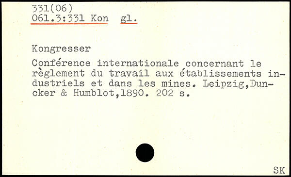 Conférence internationale concernant le reglement du travail aux établissements industriels et dans les mines.