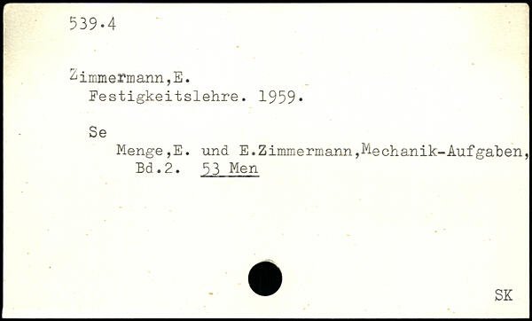 Festigkeitslehre. 1959, Se Menge,E. und E.Zimmermann,Mechanik-Aufgaben
