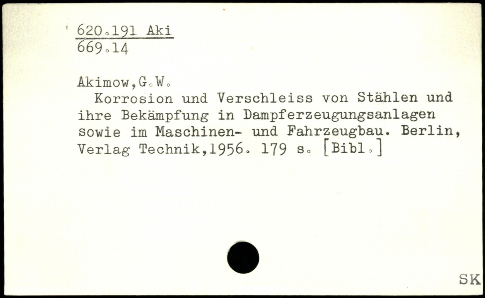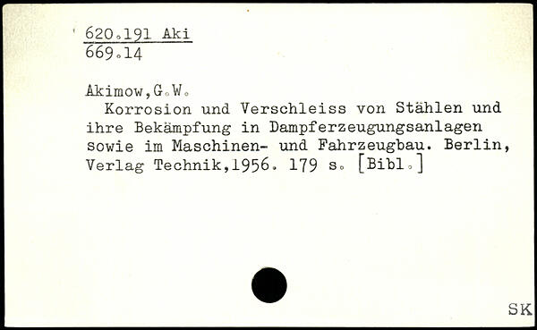 Akimow,GnWo Korrosion und Verschleiss von Stählen und ihre Bekämpfung in DampferZeugungsanlagen sowie im Maschinen- und Fahrzeugbau.