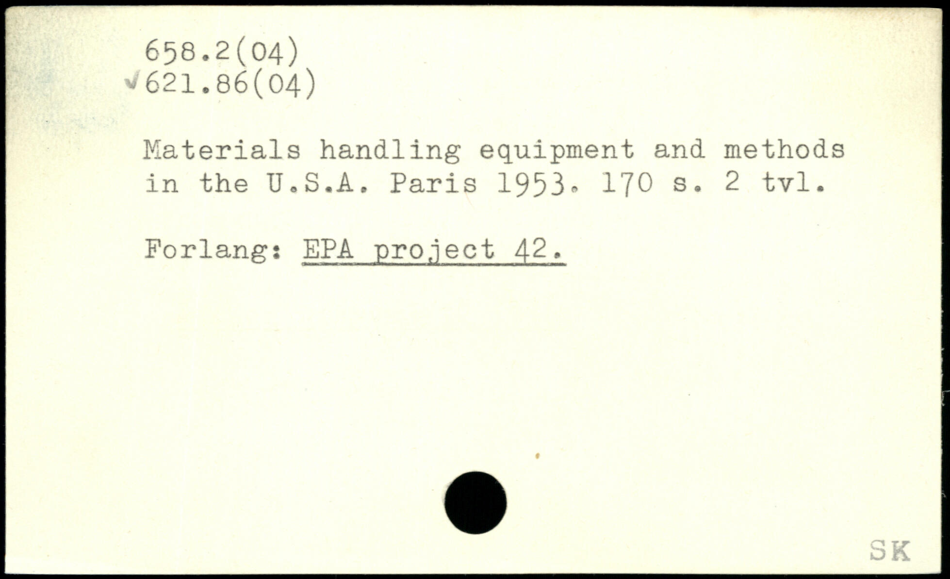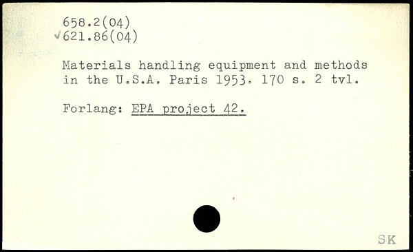 Materials handling equipment and methods in the U.S.A.