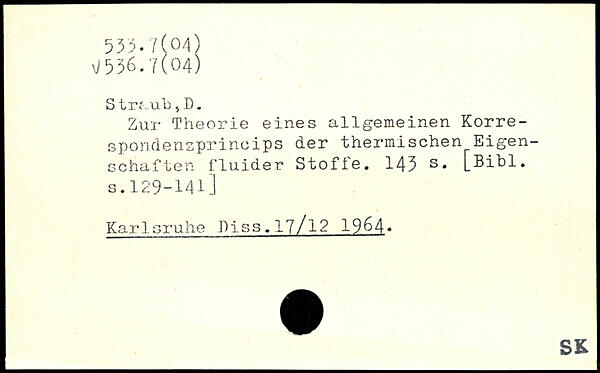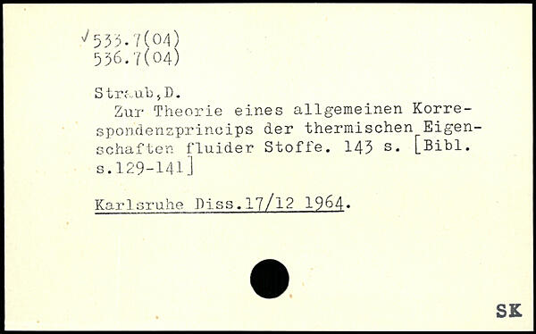Zur Theorie eines allgemeinen Korre-spondenzprincips der thermischen Eigenschaften fluider Stoffe.