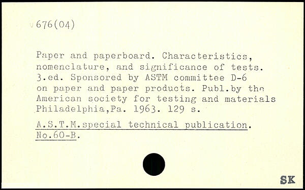 Paper and paperboard. Characteristics, nomenclature, and significance of tests.
