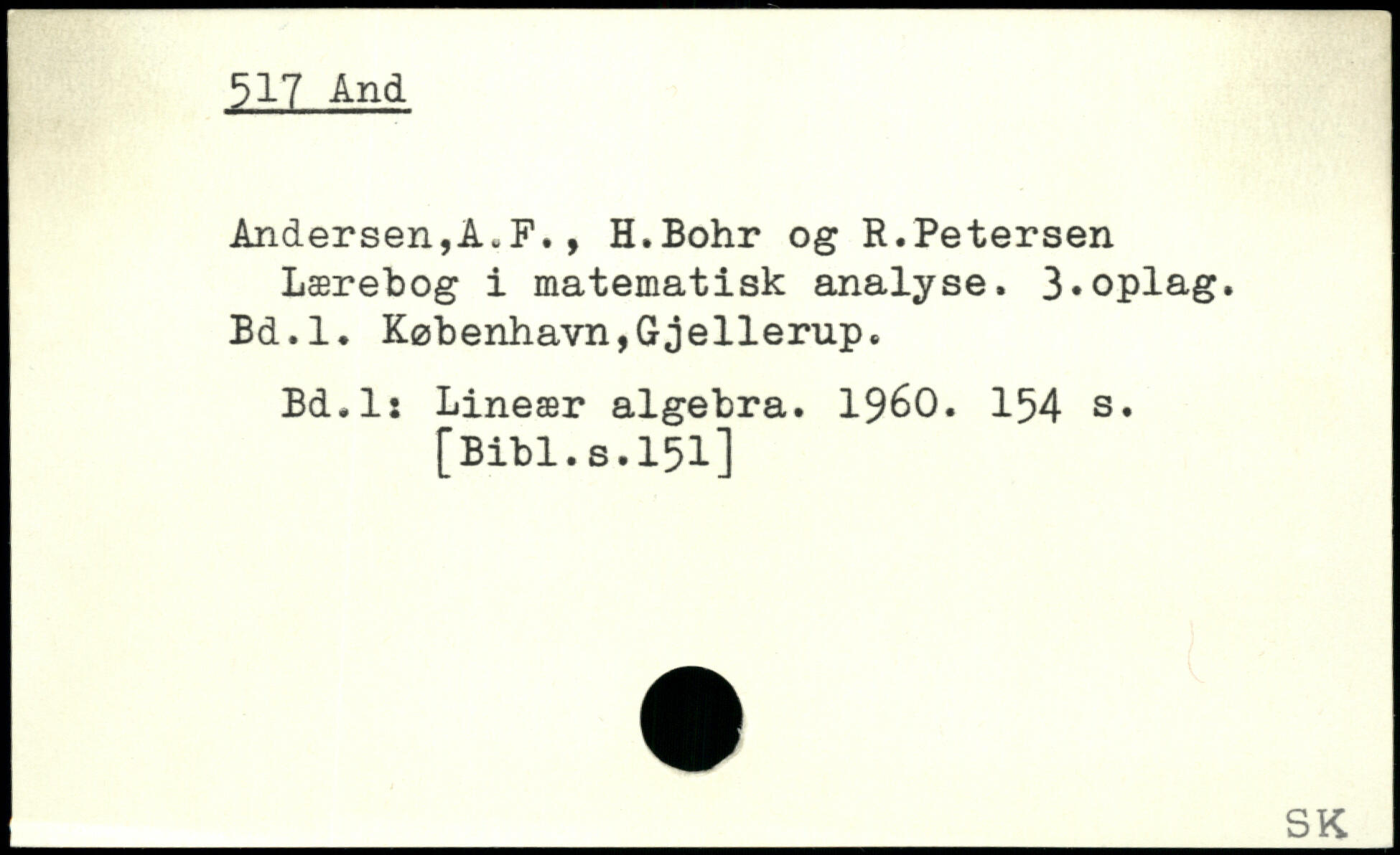 Lærebog i matematisk analyse. 3,oplag. Bd.l. København,Gjellerup. Bd.l: Lineær algebra. 1960.