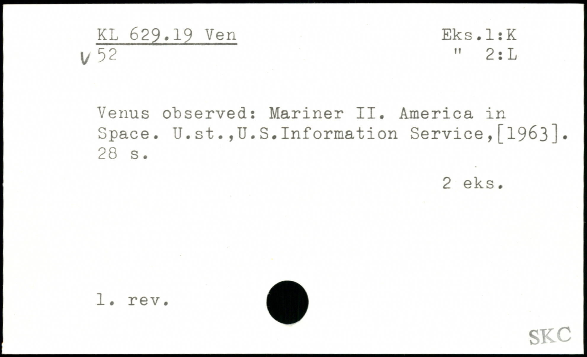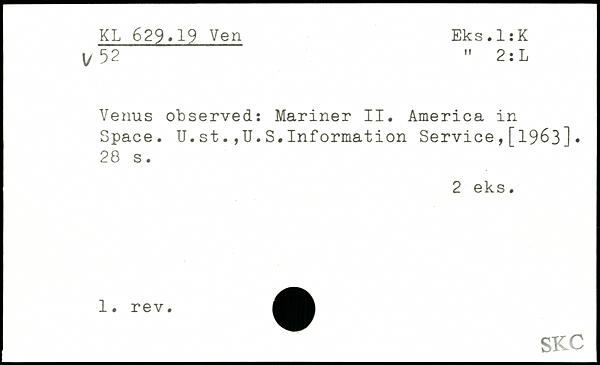 Venus observed: Mariner II. America in Space. U.st.,U.S.Information Service,[1963].
