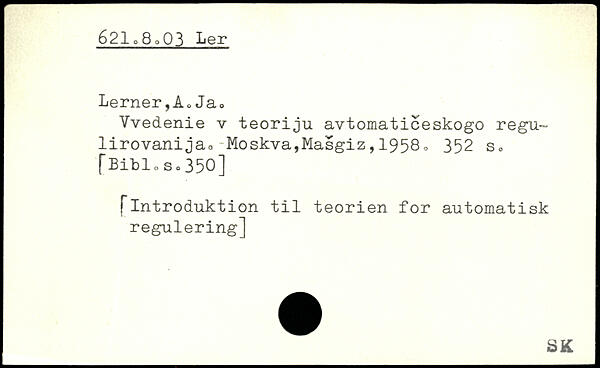 Yvedenie v teoriju avtomaticeskogo regu-lirovanija.