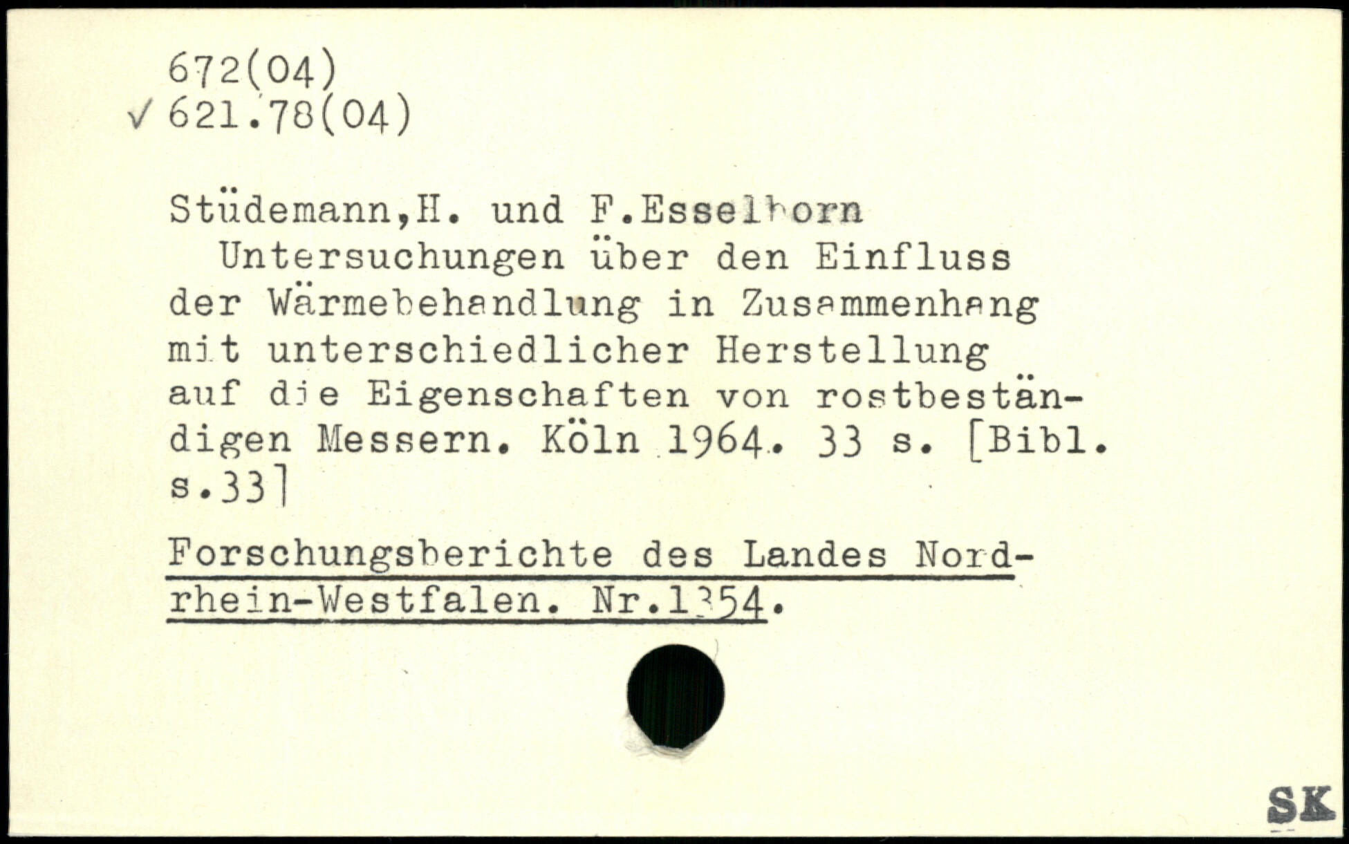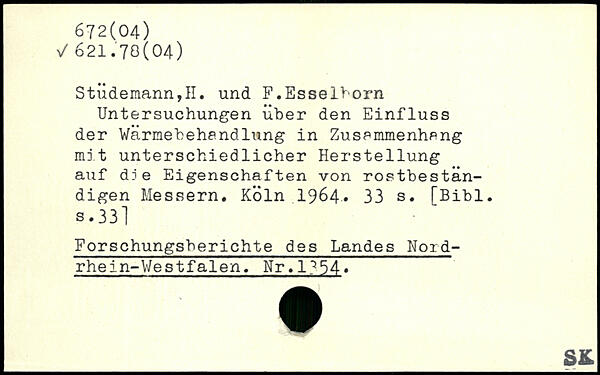 Untersuchungen über den Einfluss der Wärmebehandlung in Zusammenhang mit unterschiedlicher Herstellung auf die Eigenschaften von rostbeständigen Messern.