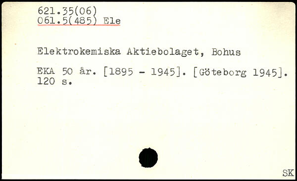 Elektrokemiska Aktiebolaget, Bohus EKA 50 år. [1895 - 1945]. [Göteborg 1945].