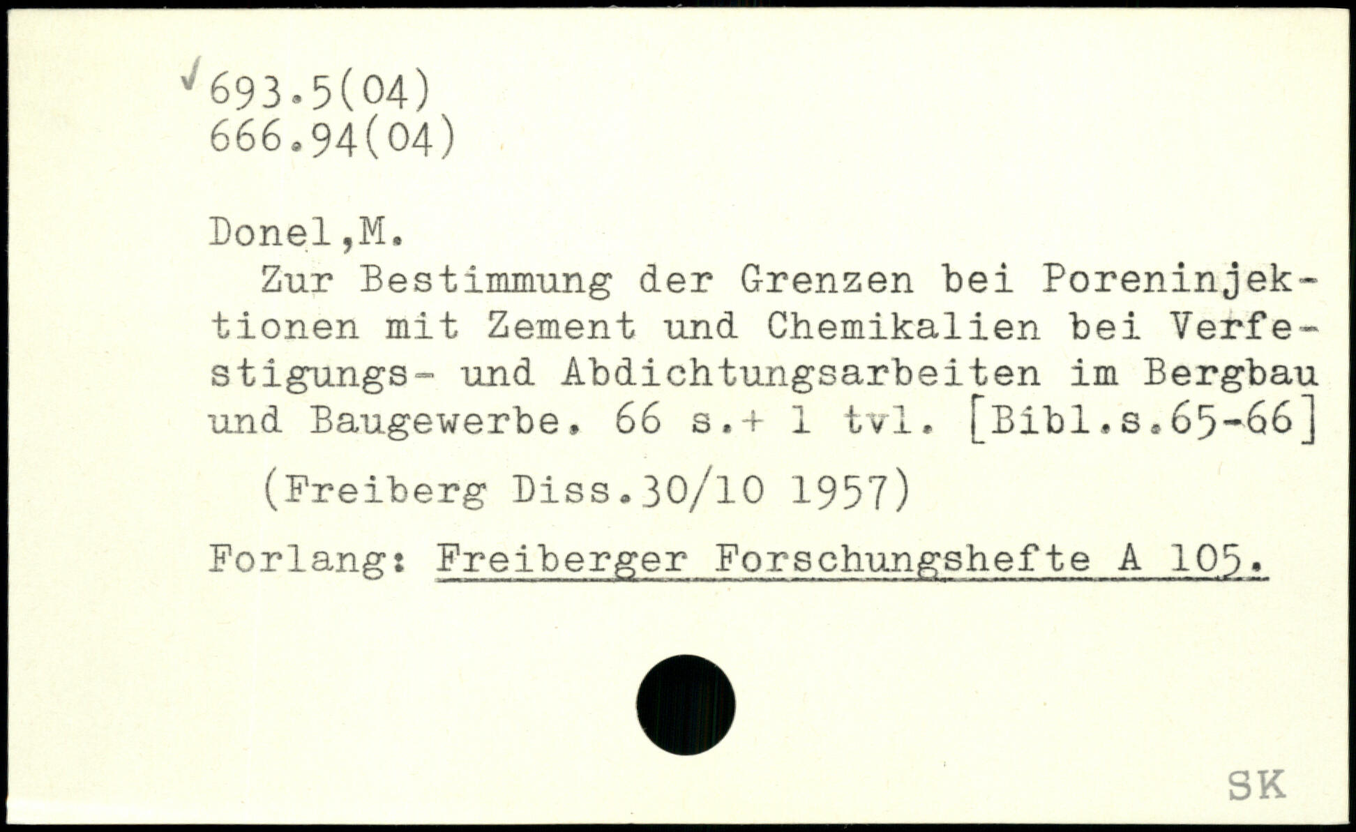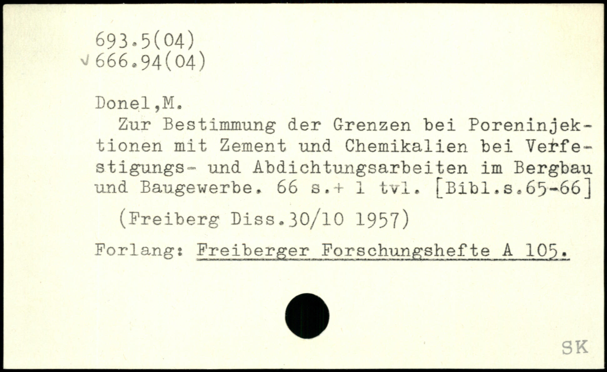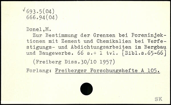 Zur Bestimmung der Grenzen bei Poreninjektionen mit Zement und Chemikalien bei Verfe-stigungs- und Abdichtungsarbeiten im Bergbau und Baugewerbe.