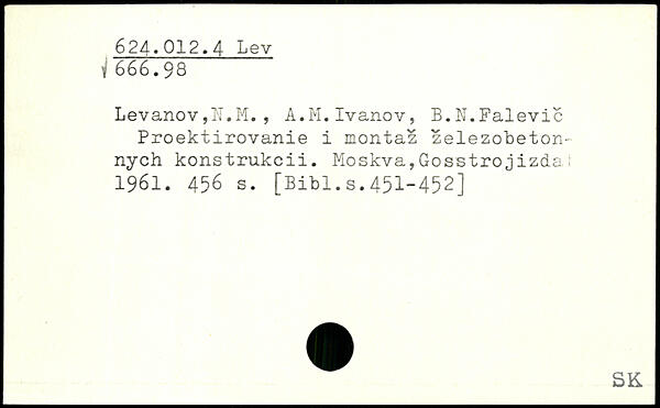 LevanovjlT.M. , A.M. Ivanov, B.N.Falevic Proektirovanie i montaz zelezobeton-nych konstrukcii. Moskva,Gosstrojizda; 1961.