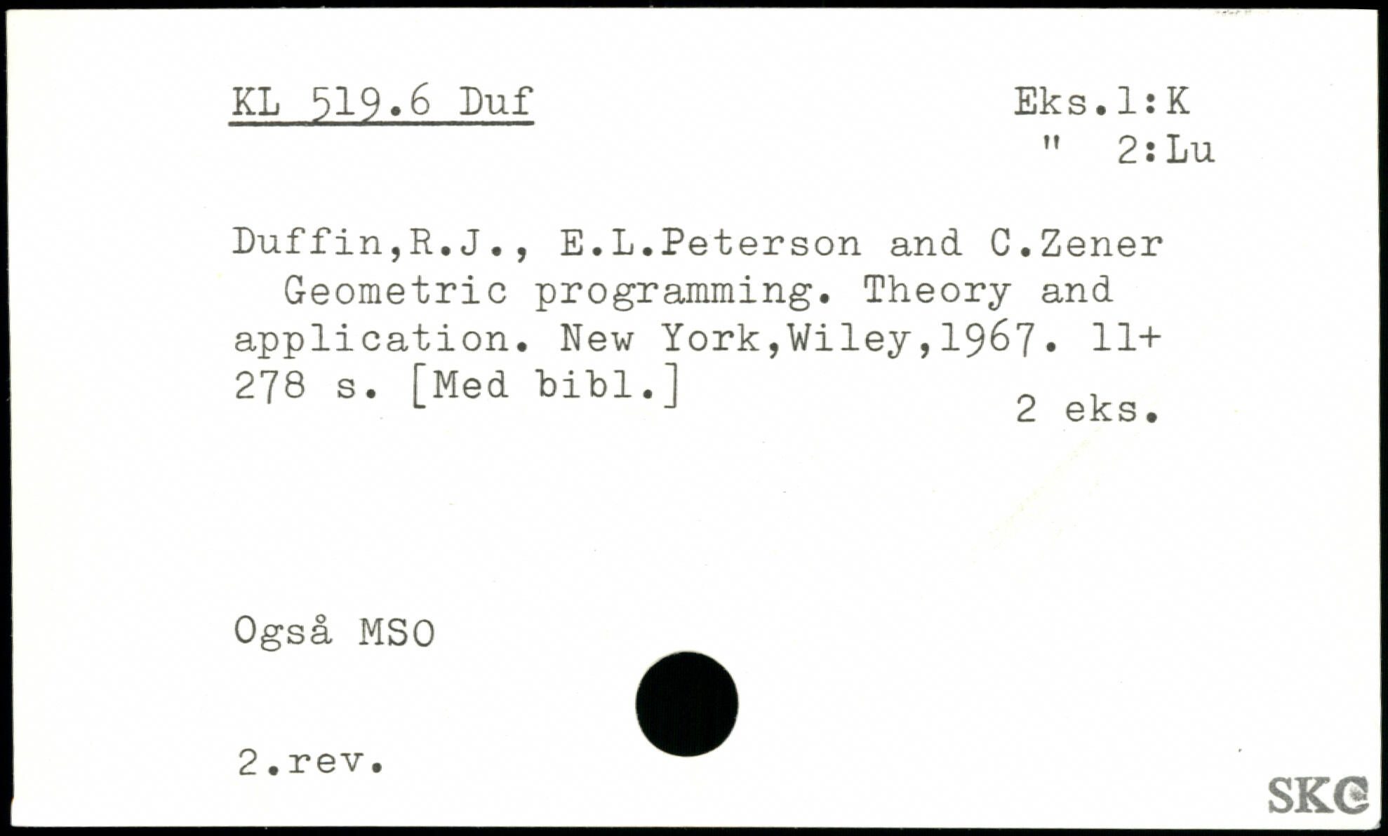 Luffin,R.J., E.L.Peterson and C.Zener Geometric programming. Theory and application.