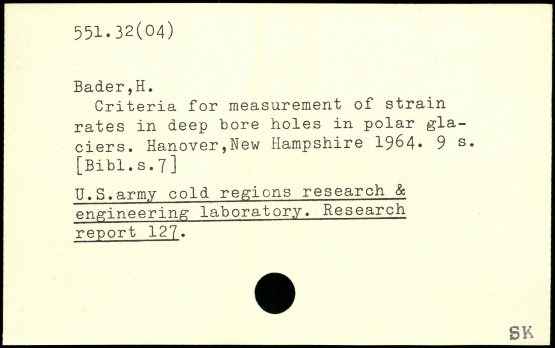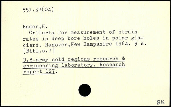 Criteria for measurement of strain rates in deep bore holes in polar glaciers. Hanover,New Hampshire 19&4-