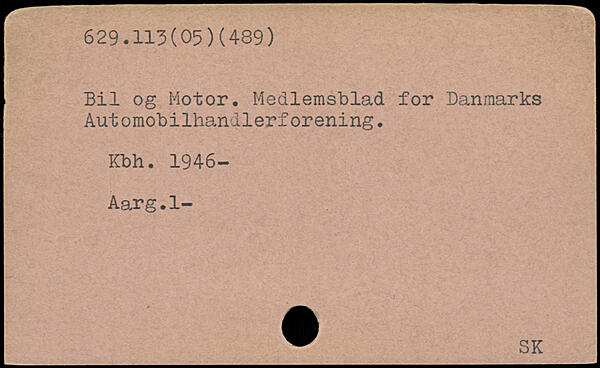 Bil og Motor. Medlemsblad for Danmarks Aut omob iIhandlerf orening. Kbh. 1946- Aarg.l-