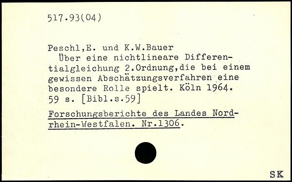 Uber eine nichtlineare Differentialgleichung 2.Ordnung,die bei einem gewissen Abschätzungsverfahren eine besondere Rolle spielt. Köln 19Ö4