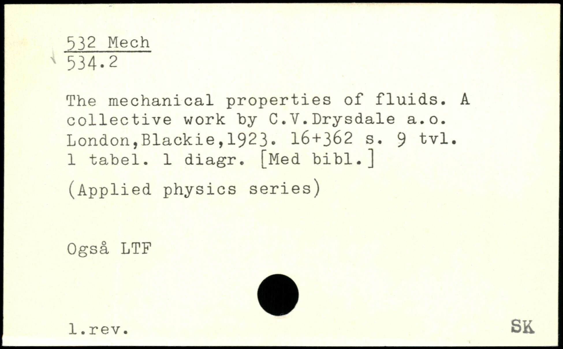 The mechanical properties of fluids. A collective work by C.V.Drysdale a.o.