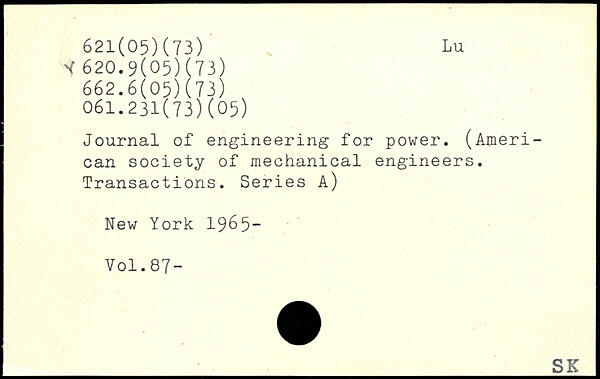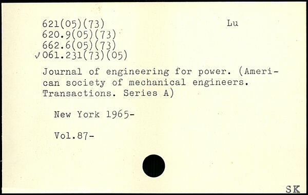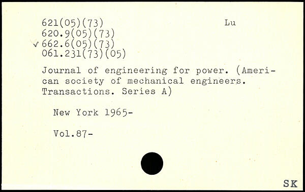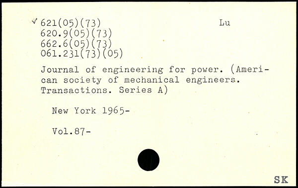 Journal of engineering for power. (Ameri-can society of mechanical engineers. Transactions. Series A)