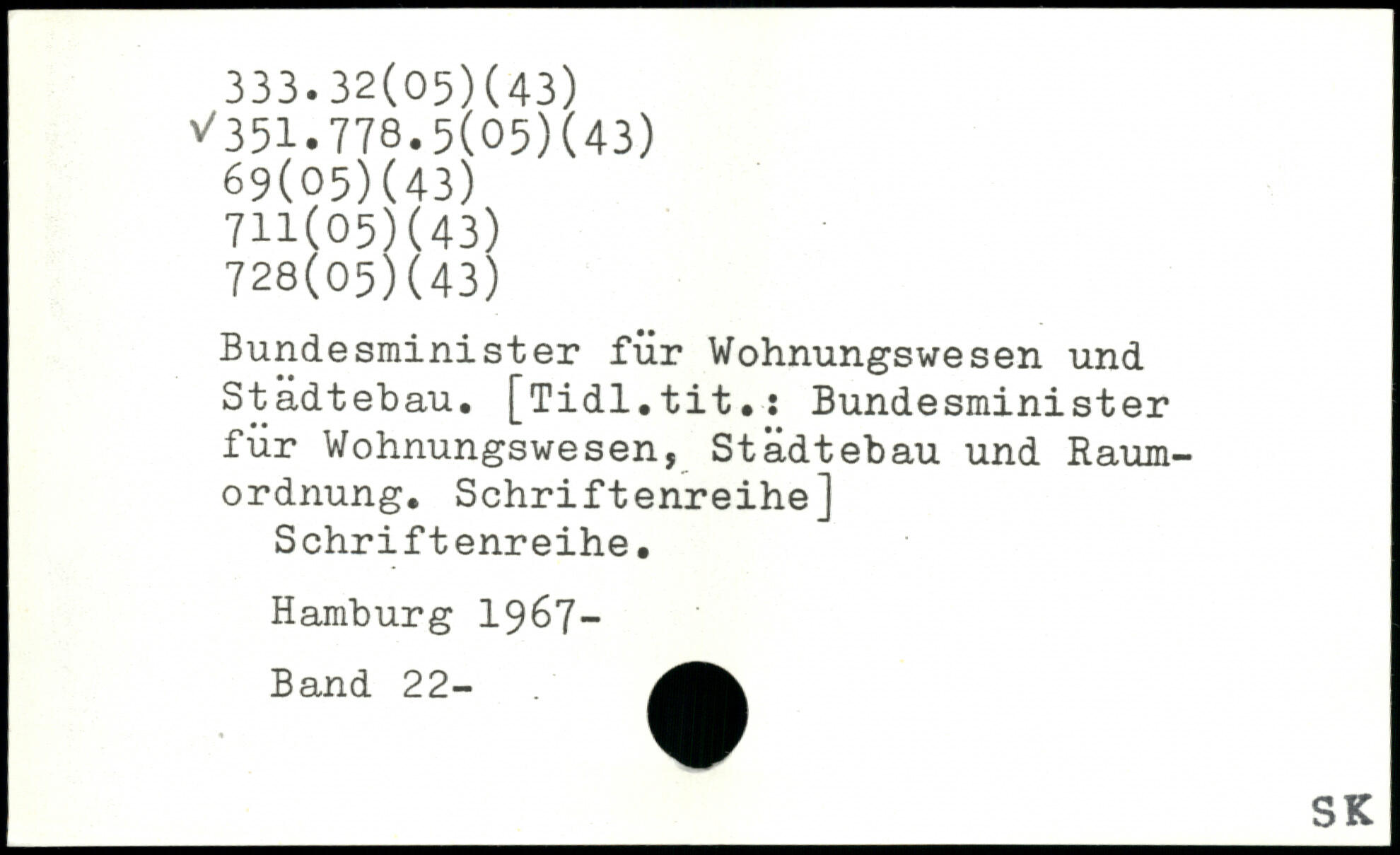 Bundesrainister für Wohnungswesen und Städtebau. [Tidl.tit.: Bundesminister für Wohnungswesen, Städtebau und Raumordnung. Schriftenreihe] Schriftenreihe.
