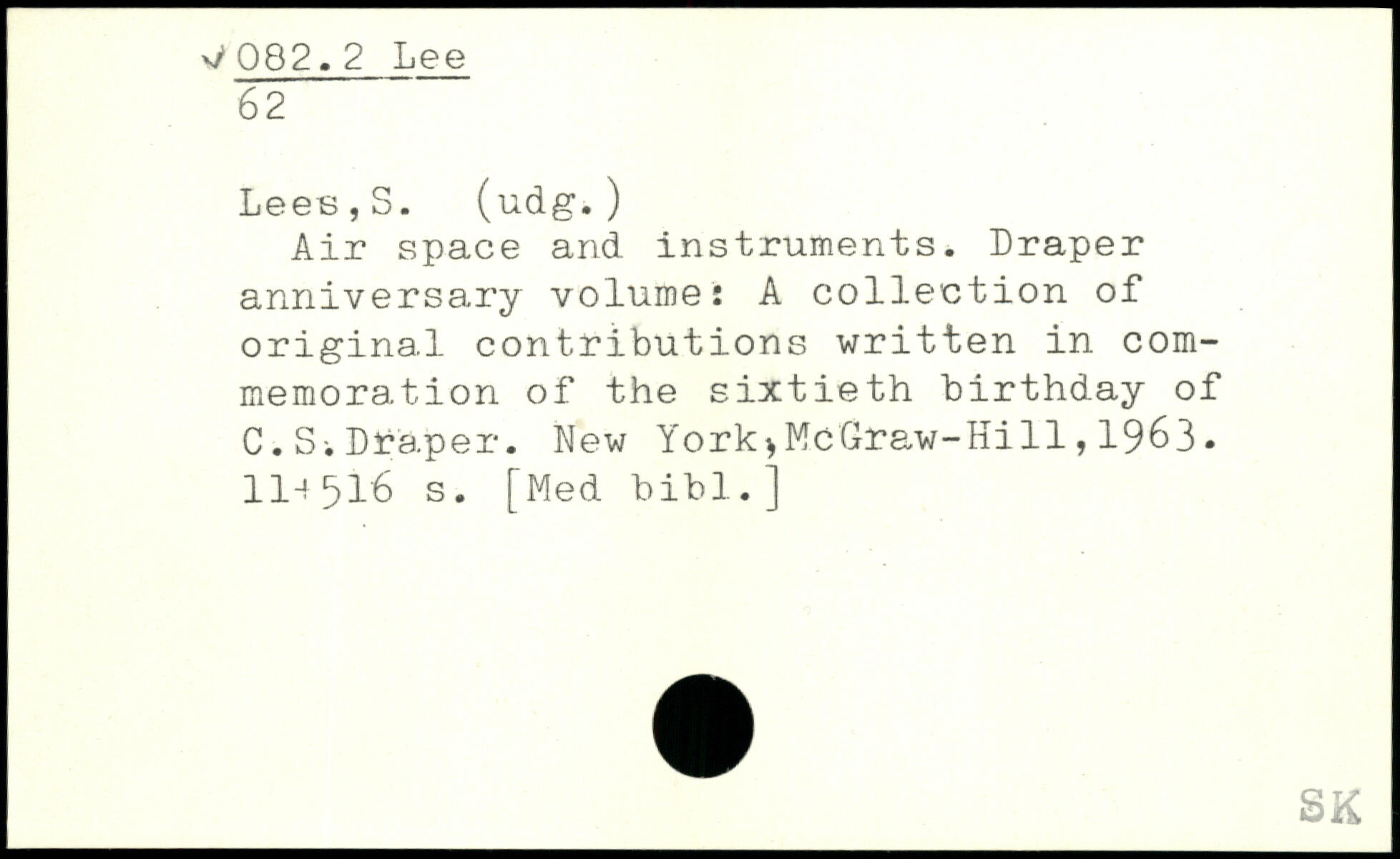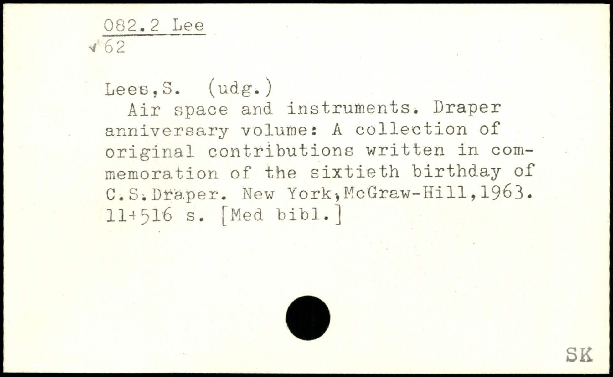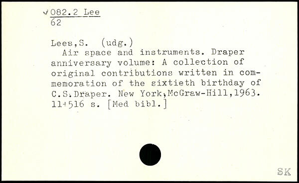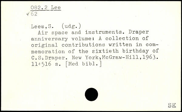 Lees,S. (ud g.) Air space and instruments. Draper anniversary volume: A collection of original contributions written in commemoration of the sixtieth birthday of C.S.Diaper. New York>McGiaw-Hill,1963.
