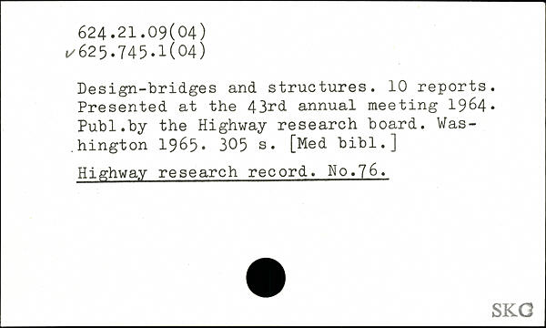 Design-bridges and structures. 10 reports. Presented at the 43rd annual meeting 1964