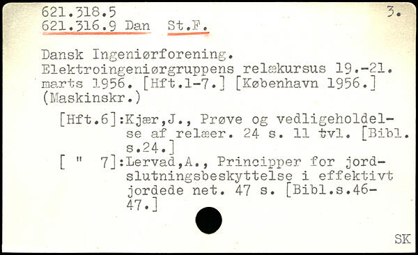 Dansk Ingeniørforening. Elektroingeniørgruppens relækursus 19.-21. marts 1956. [Hft.1-7.]