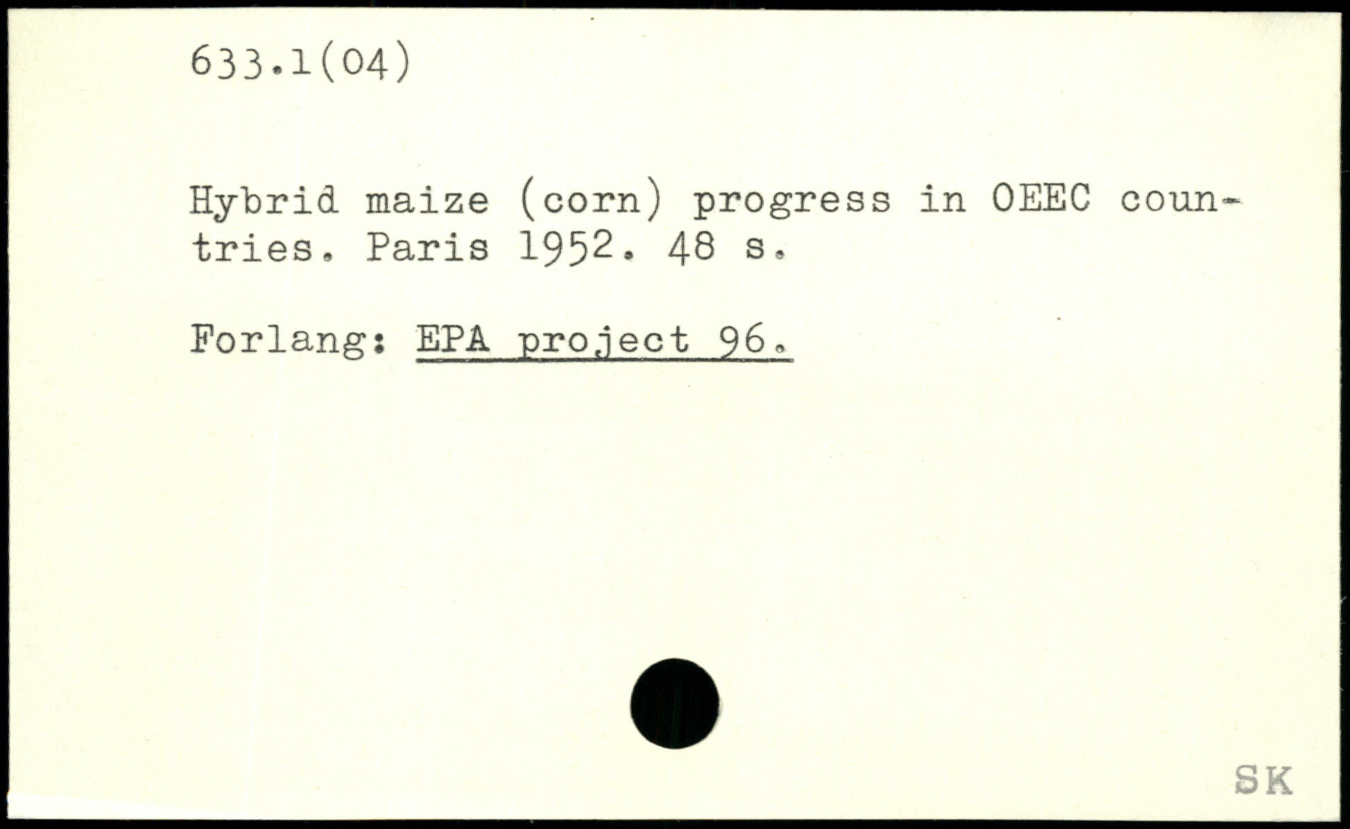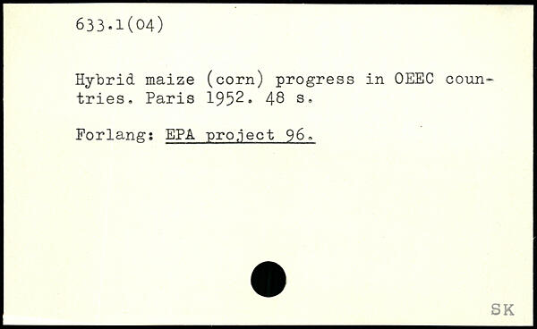 Hybrid maize (corn) progress in OEEC coun-tries.