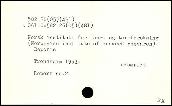 Norsk institutt for tang- og tareforskning (Norwegian institute of seaweed research). Reports