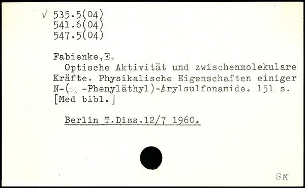 Optische Aktivität und zwischenmolekulare Kräfte, Physikalische Eigenschaften einiger N- (>;. -Phenyläthyl)-Arylsulfonamide.