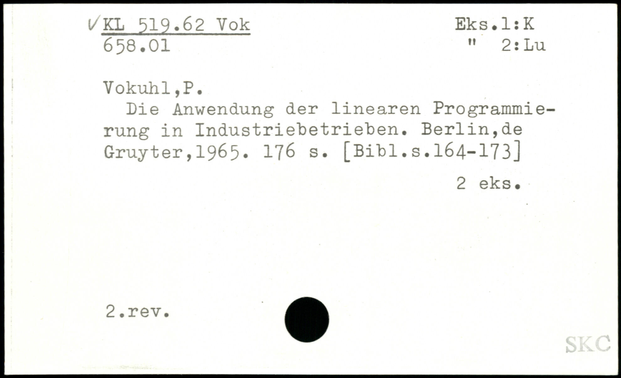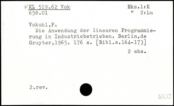 Die Anwendung der linearen Programmierung in Industriebetrieben. Berlin,de Gruyter,1965. 17& s.