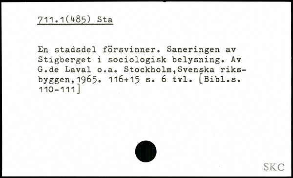 En stadsdel försvinner. Saneringen av Stigberget i sociologisk belysning. Av G.de Laval o.a.