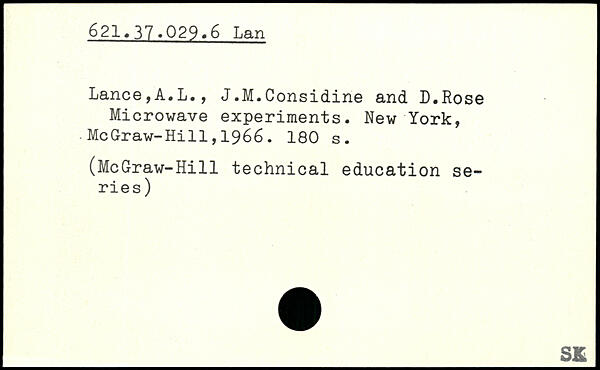 Lance,A.L., J.M.Considine and L.Rose Microwave experiments.