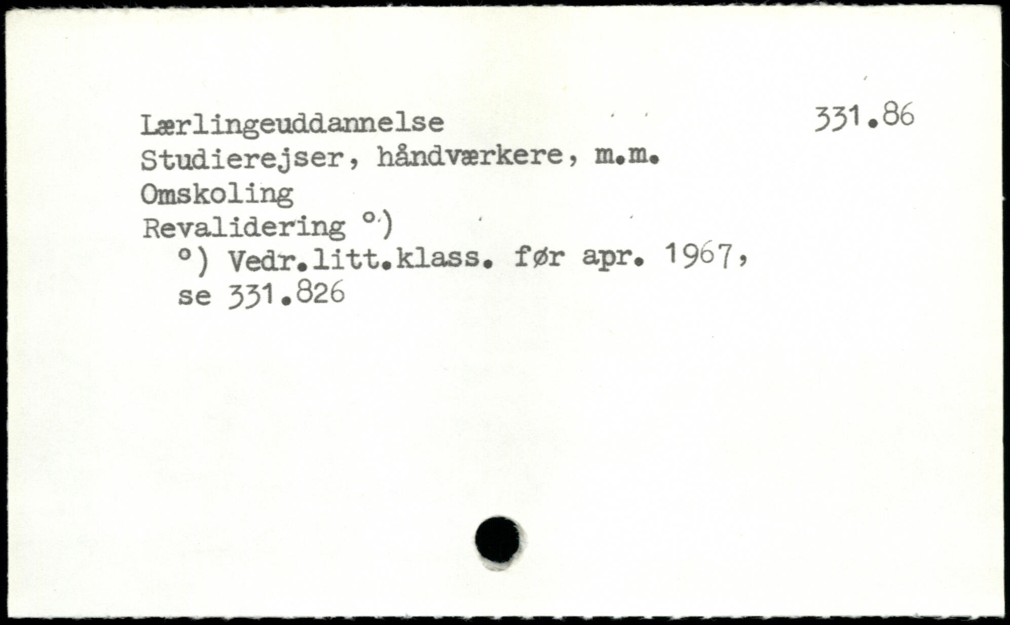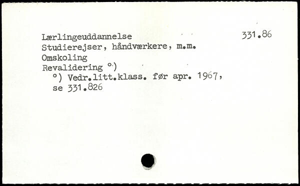 Studierejser, håndværkere, m.m. Omskoling Revalidering 0) .) Vedr.litt.klass. før apr. 19^7 ? se 331,826