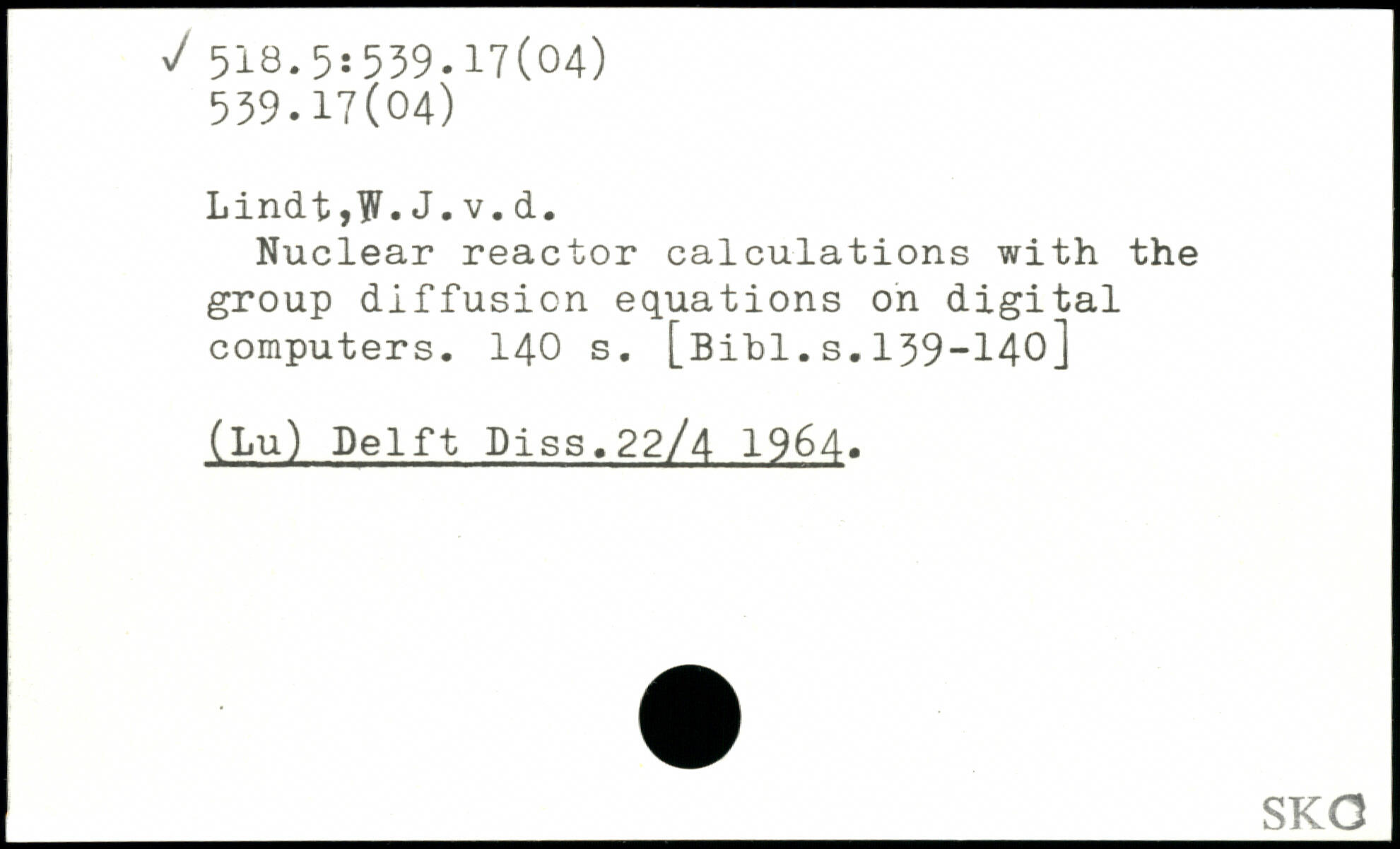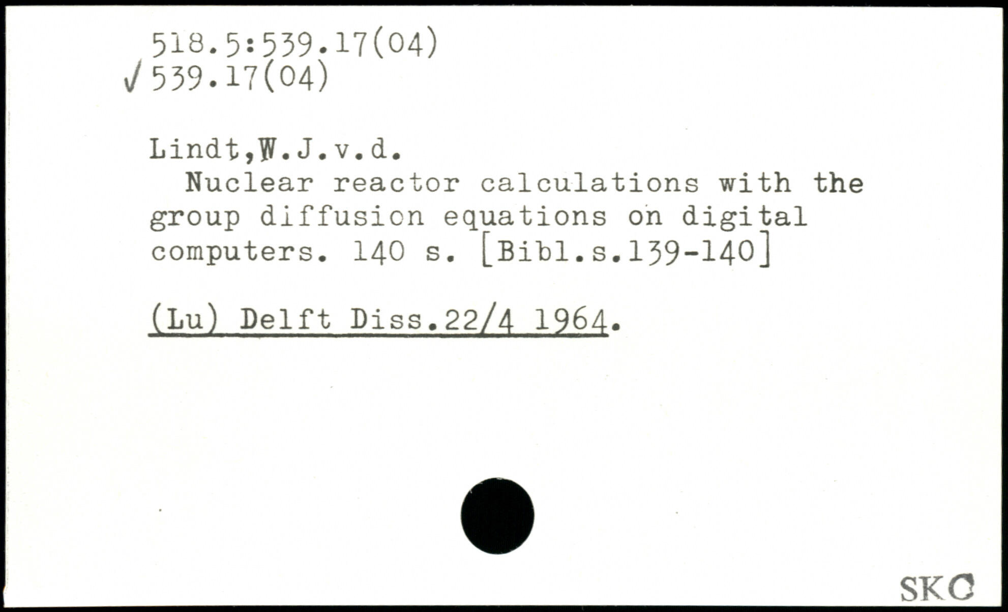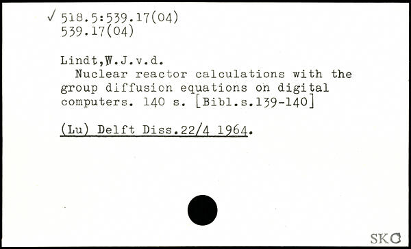 Lindt,W.J.v.d. Nuclear reactor calculations with the group diffusion equations on digital computers.