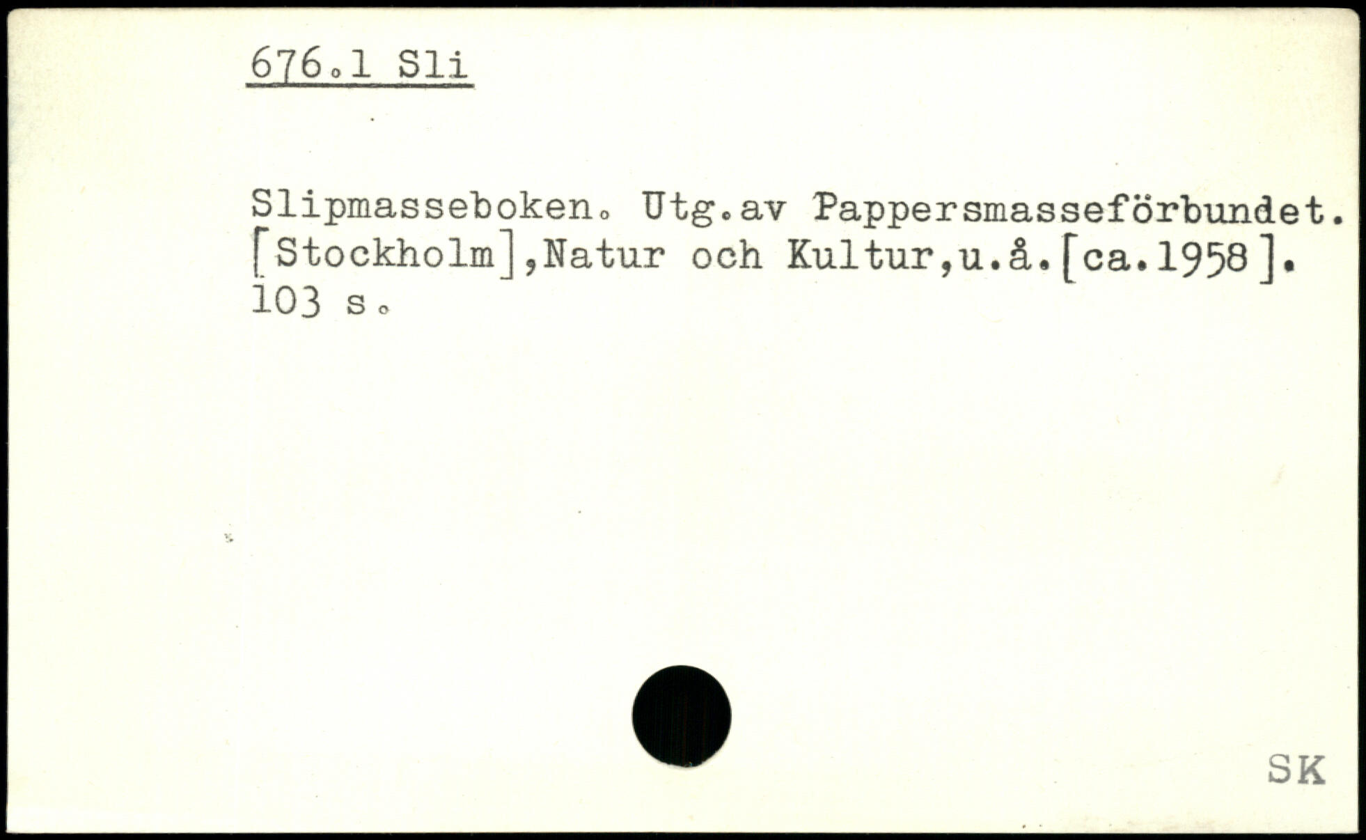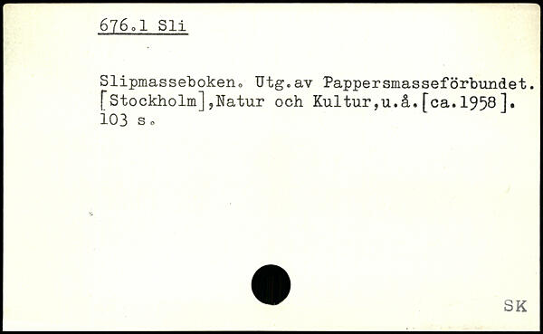 Slipmassebokeru Utg.av Pappersmasseförbundet. [Stockholm],Natur och Kultur,u.å.[ca.1958].