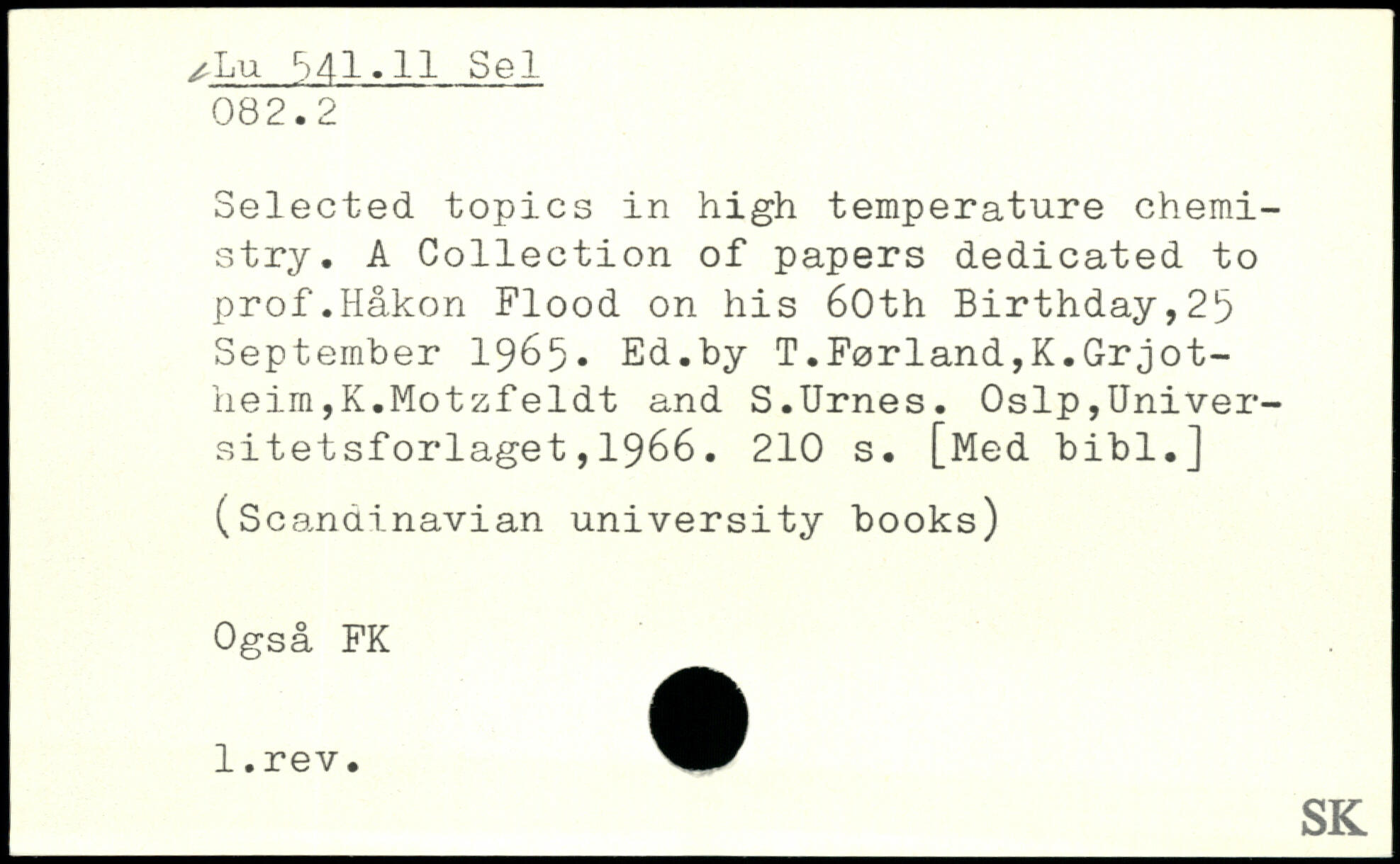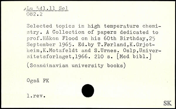 Selected topics in high temperature chemistry. A Collection of papers dedicated to prof.Håkon Flood on his 60th Birthday