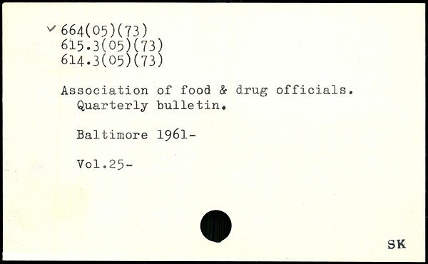 Association of food & drug officials. Quarterly bulletin. Baltimore 1961-