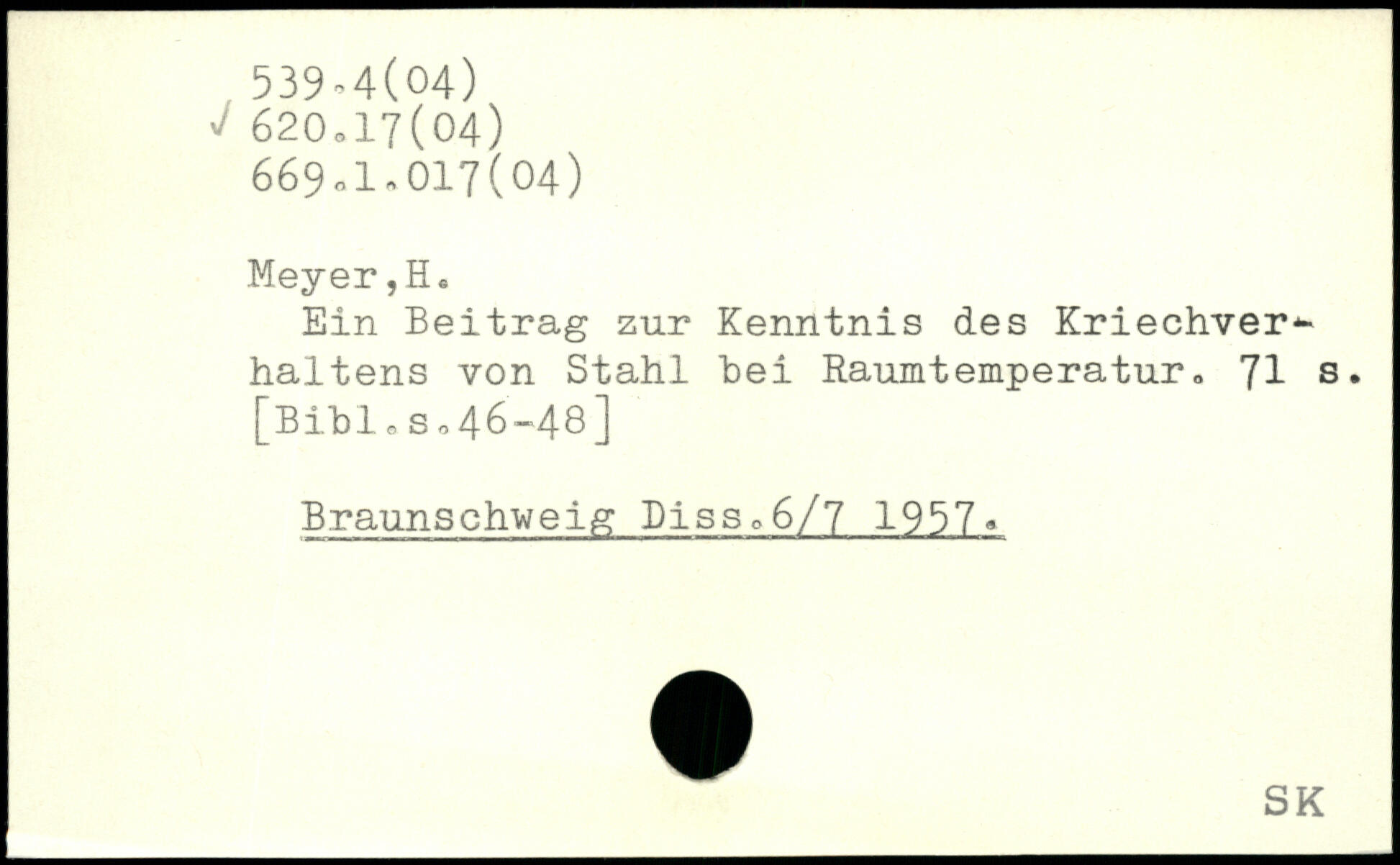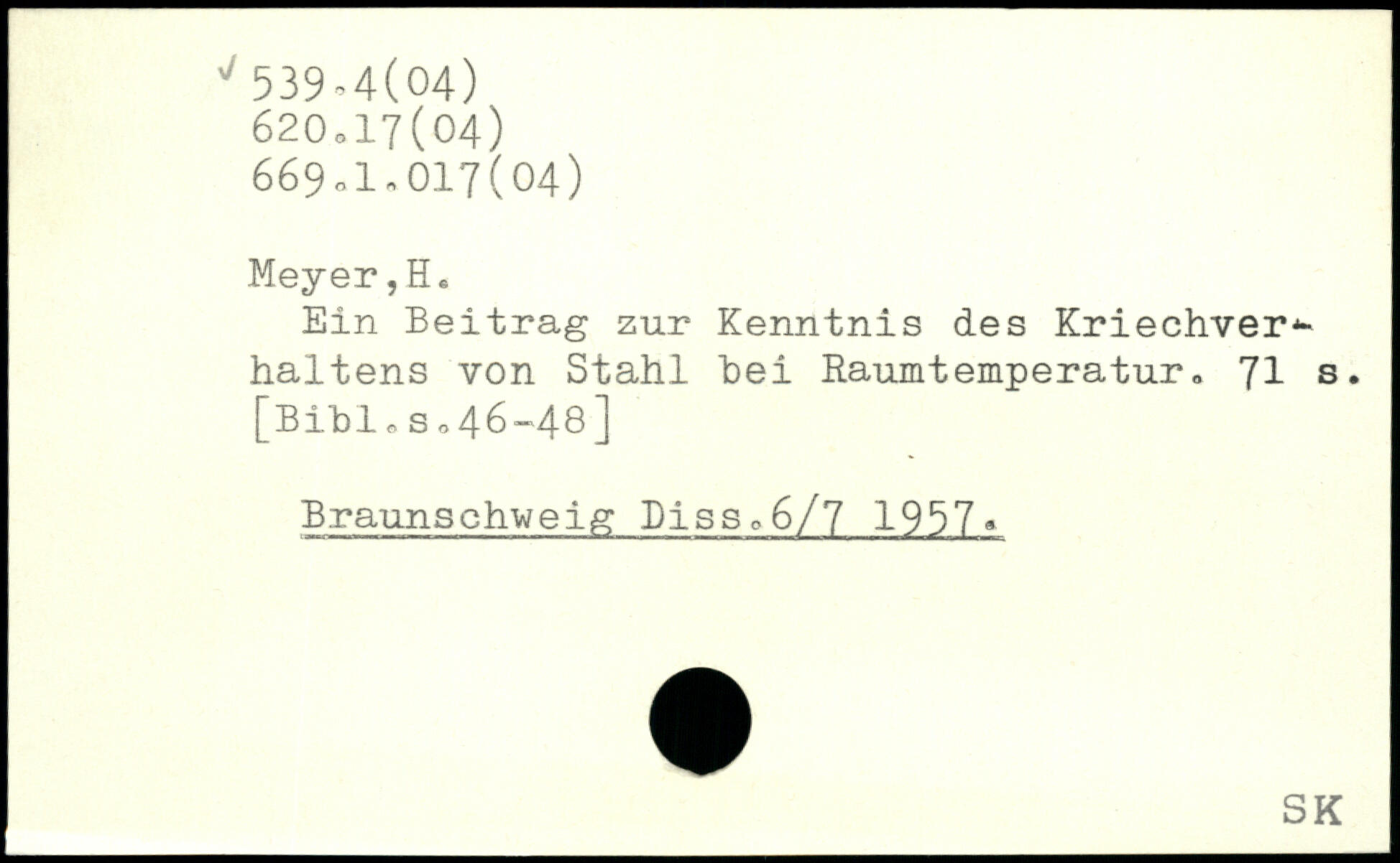 Ein Beitrag zur Kenntnis des Kriechver.-haltens von Stahl bei Raumtemperatur