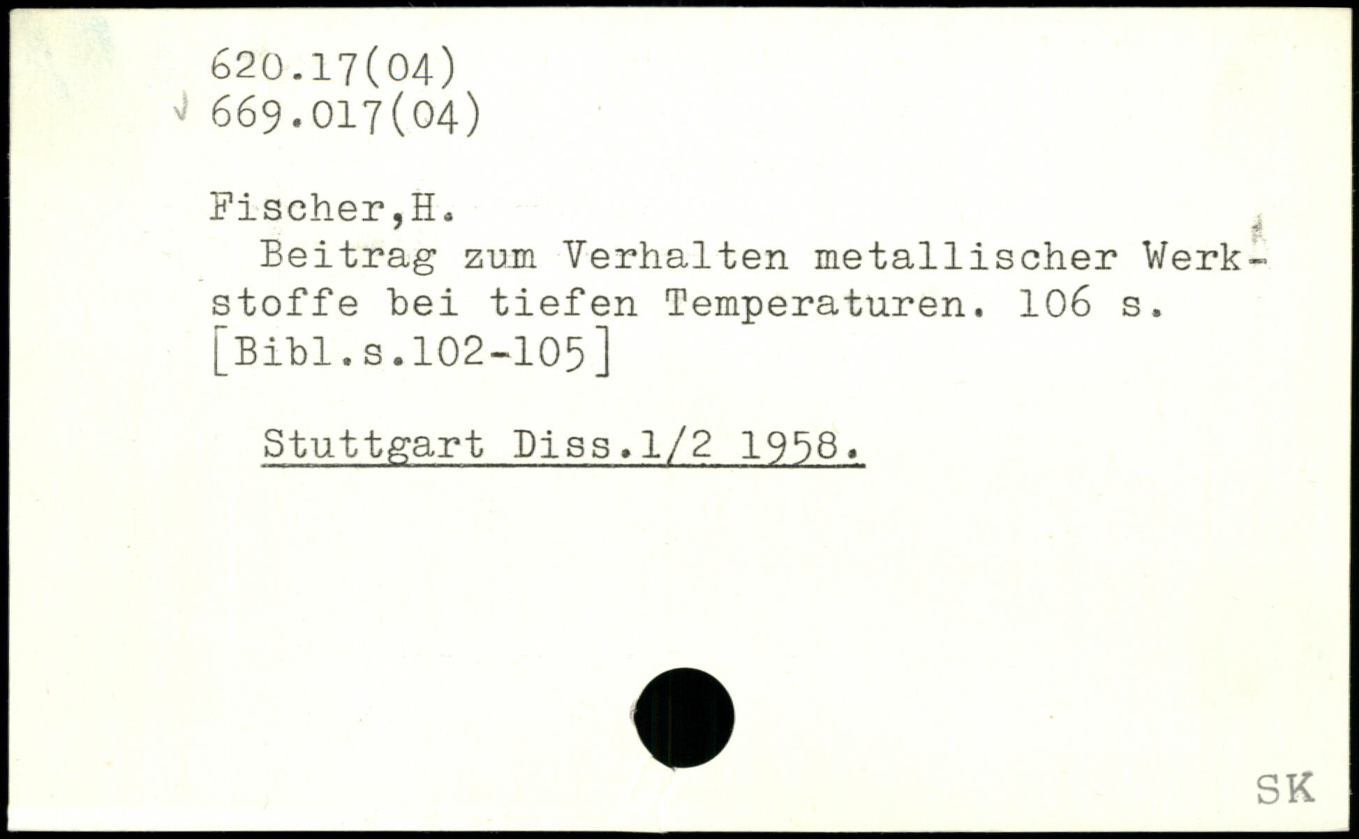 Beitrag zum Verhalten metallischer Werkstoffe hei tiefen Temperaturen.