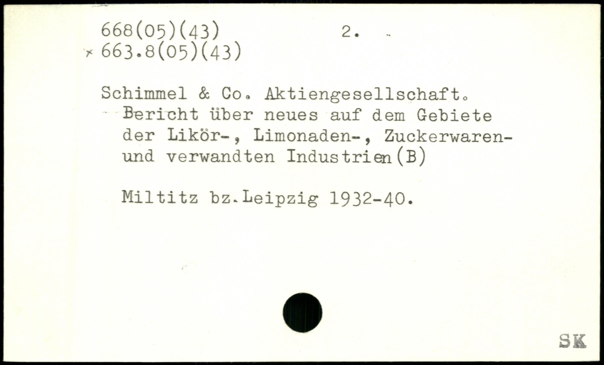 Schimmel & Co, Aktiengesellschaft, Bericht über neues auf dem Gebiete der Likör-, Limonaden-, Zuckerwaren-und verwandten Industrien (B) Miltitz bz.