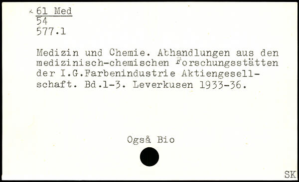 Medizin und Chemie. Athandlungen aus den medizinisch-chemischen -^'orschungs statten der I. G-. Farbenindus tri e Aktiengesellschaft.