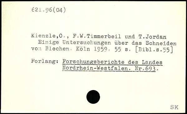 Kienzle,0,, F,W,Timmerbeil und T.Jordan Einige Untersuchungen über das Schneiden von Blechen,